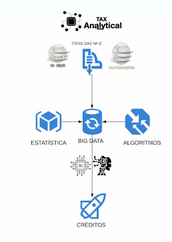 O algoritmo utilizado compila todos os informes e relatórios transmitidos à Receita Federal nos últimos 5 anos, juntamente com as notas fiscais de entrada e saída. Essa vasta quantidade de dados forma um BIG DATA fiscal, que permite ao algoritmo realizar uma revisão completa das declarações da empresa. Essa revisão é feita de forma não invasiva, ou seja, sem interferir nos procedimentos administrativos ou jurídicos da empresa. O algoritmo realiza uma conferência minuciosa de todos os lançamentos contábeis dos últimos 5 anos, identificando assim os créditos fiscais não apropriados. Esses créditos são então apresentados em relatórios em formato Excel ou PDF, que são submetidos à aprovação da contabilidade da empresa.