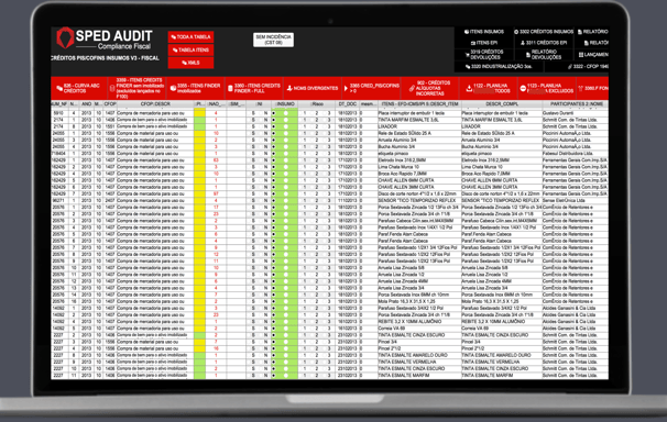 Relatórios analíticos com a identificação de oportunidades de créditos fiscais, não apropriados, listados operação a operação, capturados do cruzamento de todas as operações contábeis dos últimos 5 anos